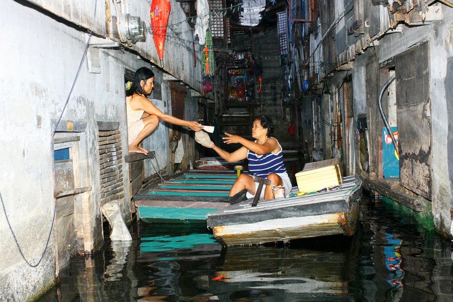 At the heart of Malabon, a low-lying district next to Manila Bay, stands Artex village, a one-hectare compound of two-story houses. Once owned by one of the Philippines’ largest textile companies, it has been permanently flooded for nearly a decade.