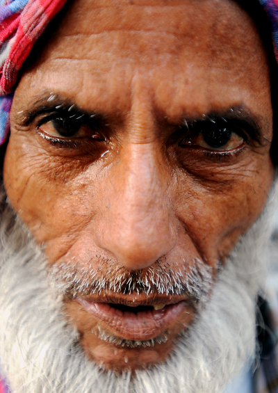His total daily earnings range between 50 rupees and 100 rupees, from which he has to pay 30 rupees for the rental of his rickshaw. At night he sleeps in a room shared with a dozen or so other men, paying 90 rupees a month for his bed.