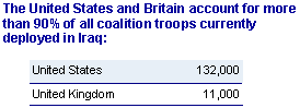 Taken together, the United States and Britain account for over 90% of all the troops in Iraq. |