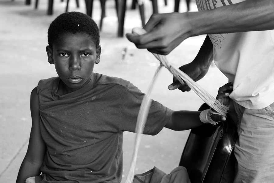 Six photos depict the power of boxing as a guiding force in the lives of South African street children.