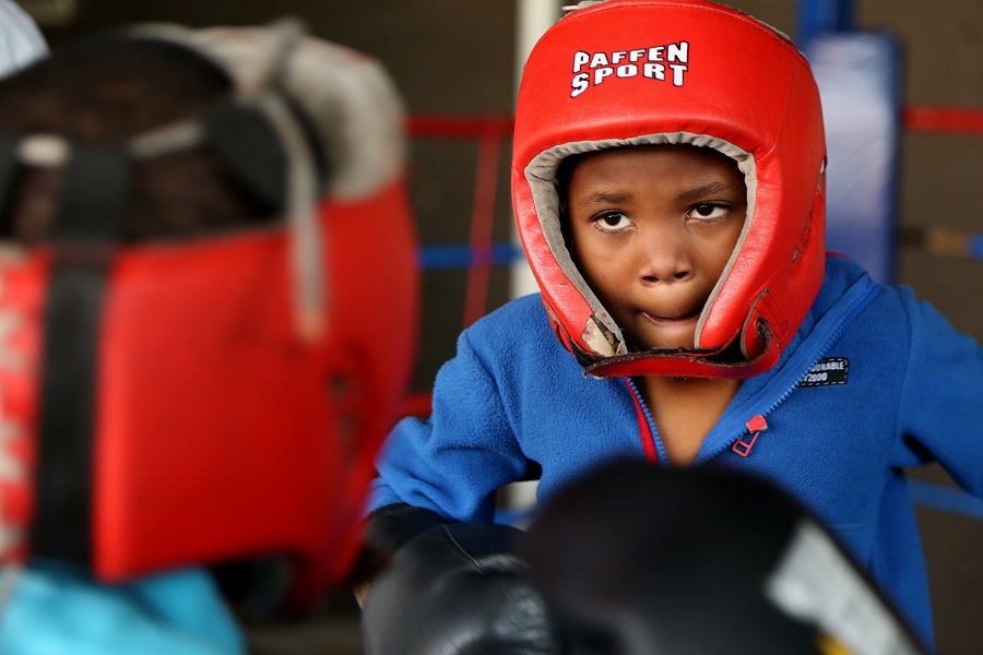 Donated by a local Church, George Khosi's boxing club has become a safe haven for local street children.