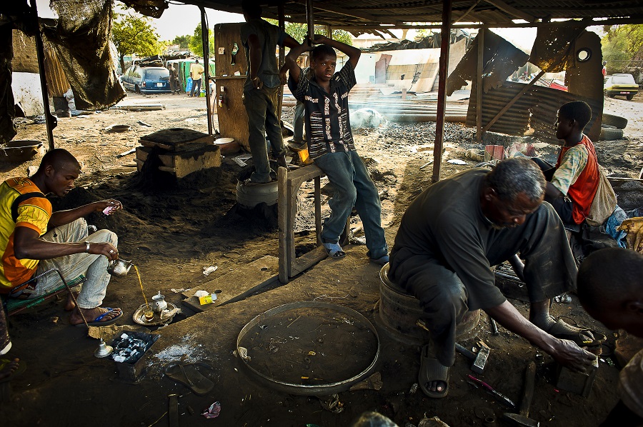 In Mali, blacksmiths’ associations, such as this one at Médine district in Bamako, the country’s capital, recycle scrap metal into all manner of everyday objects, from pots and buckets to pulleys and nuts.