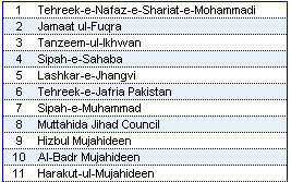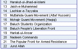 | Known Terrorist Groups in Pakistan |