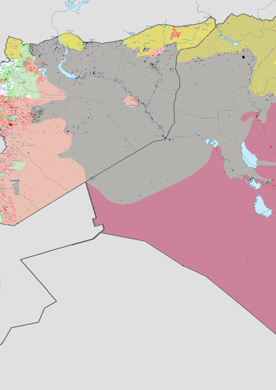 Map of approximate IS control in Syria and Iraq, May 22, 2015. (Wikimedia)
