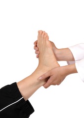 The facial expressions of one masseur give credence to the belief that foot massage serves a medical purpose.